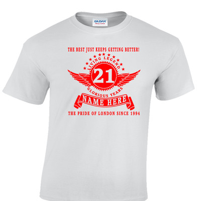 Search for your new favorite t-shirt today. In Stock Share Save Tweet Personalised with the year of birth Choose from sizes S-XXL Perfect to celebrate a 21st Birthday. We are a 5 star T-shirt printing company.